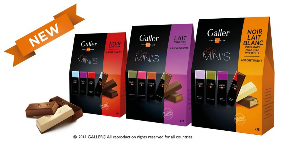 10 Pocketbags de 15 mini-bâtons 12g Galler, assortiment Noir Lait Blanc